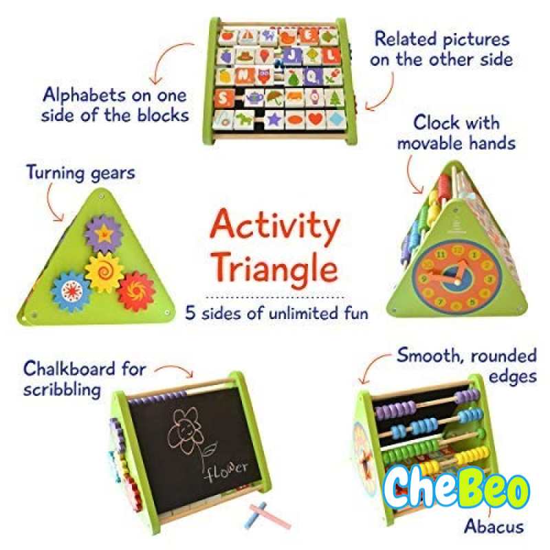 5-in-1 Wooden Activity Triangle Learning Toy| Learn Alphabets