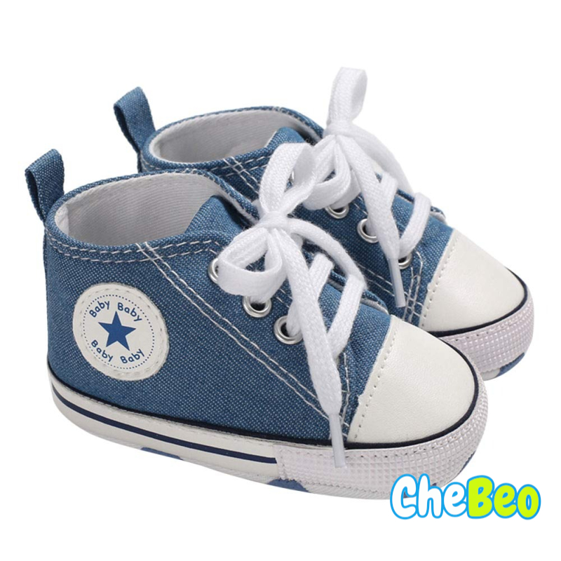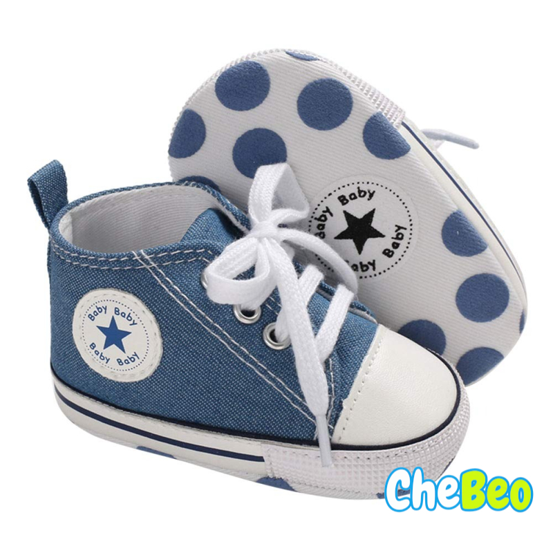 Baby Boys Fabric Canvas Style Lace Up Shoes in Blue Color
