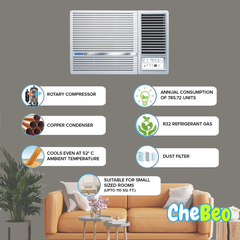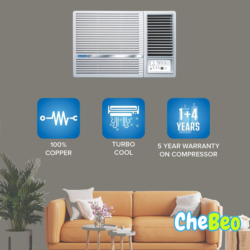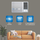 Blue Star 1 Ton 3 Star Window AC - White (WFA312LL, Copper Condenser)