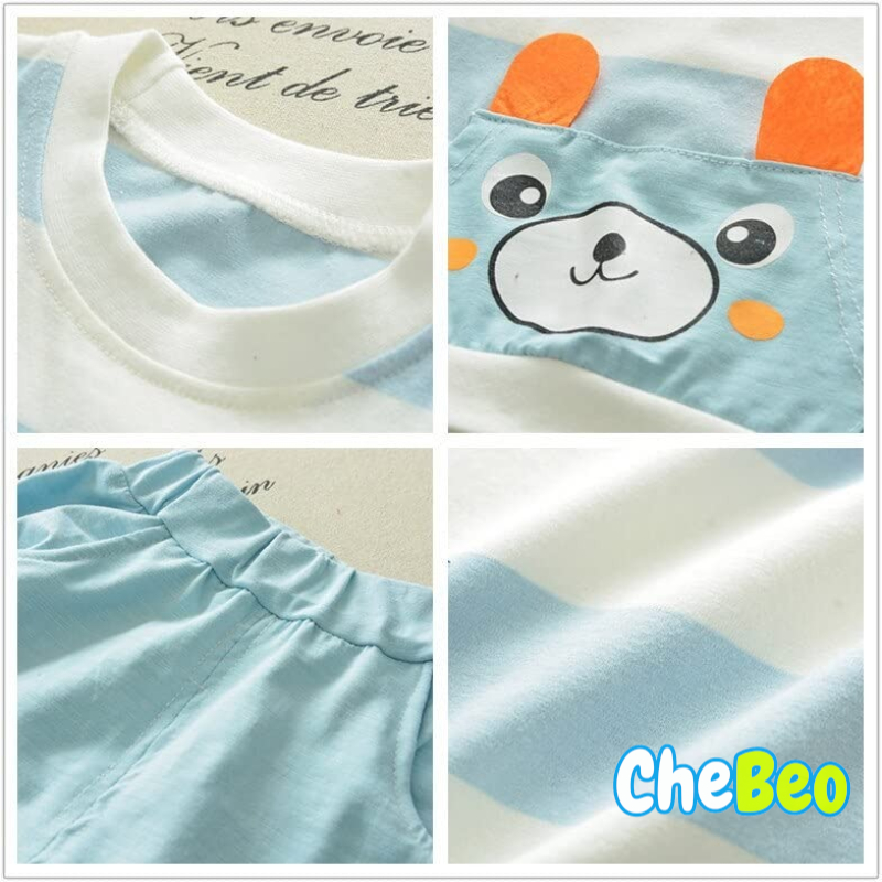 Bold N Elegant Kids Cartoon Stripe Print Cotton Half Sleeve T-shirt and Shorts