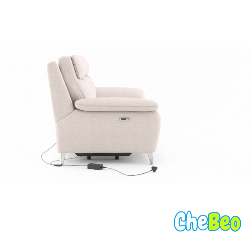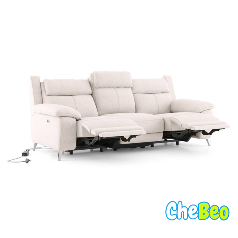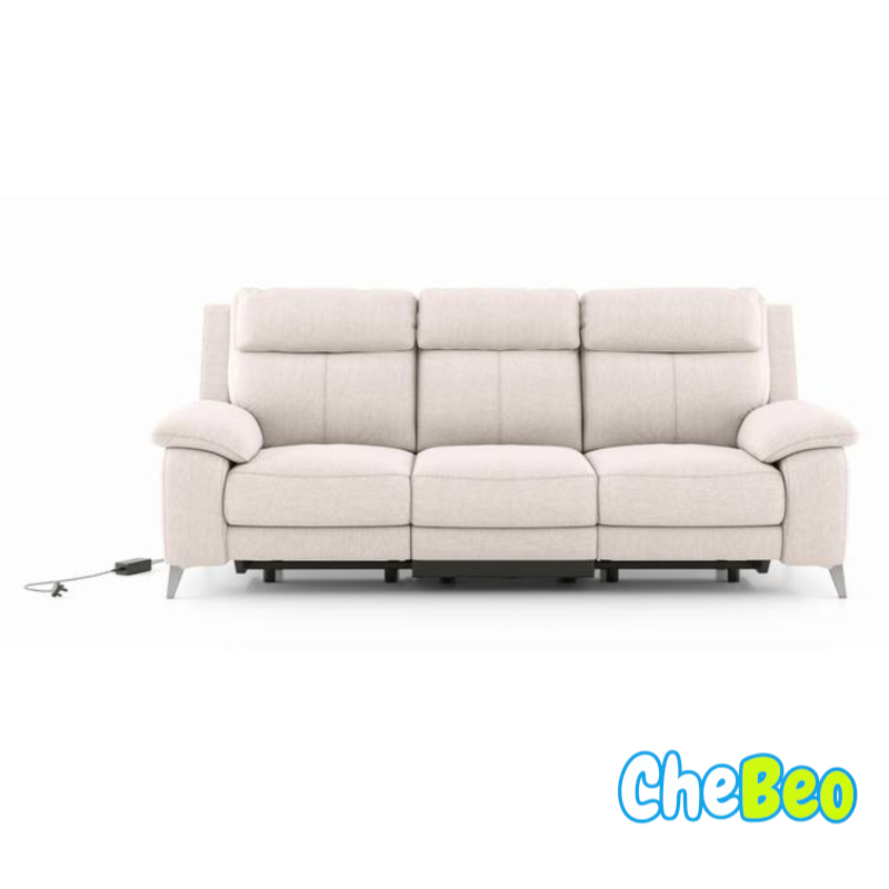 Emila Fabric Three Seater Motorized Recliner In Cream Colour