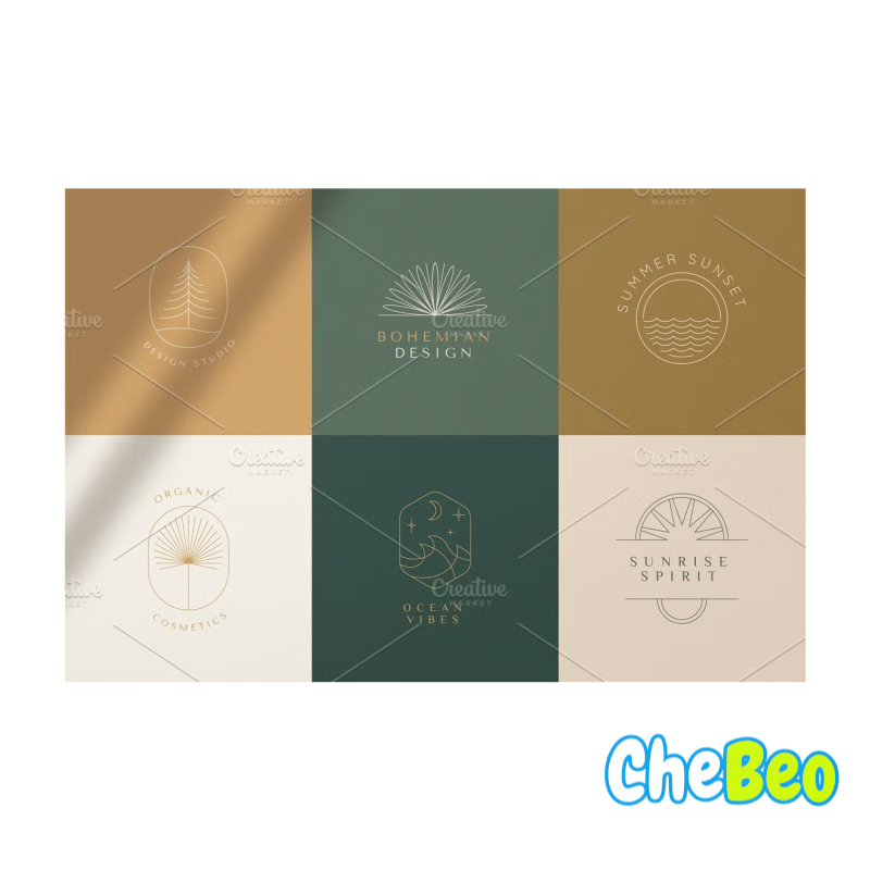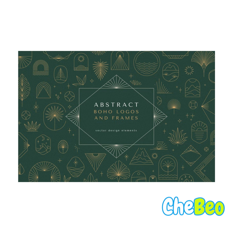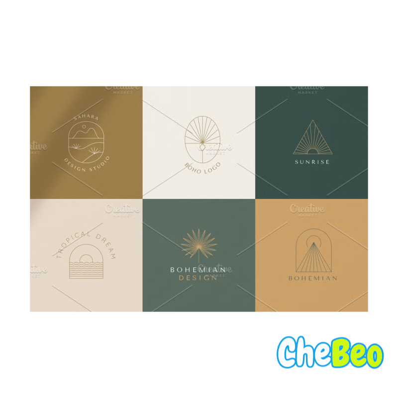 Bohemian logos - a new set of vector design elements and templates. Abstract logos and branding elements in trendy linear minimal style, emblems, and badges for design studios, shops, female businesses, and handcrafted products.