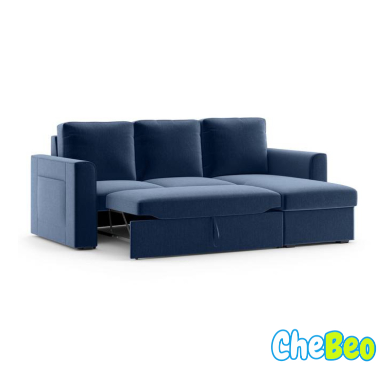 Kowloon Sectional 3 Seater Pull Out Sofa Cum Bed In Lapis Blue Colour