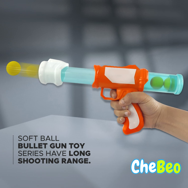 Load each toy gun with 1 soft foam ball at a time, cock, aim, and knockdown all gun targets from up to a shooting range; these toy guns are compatible with others.