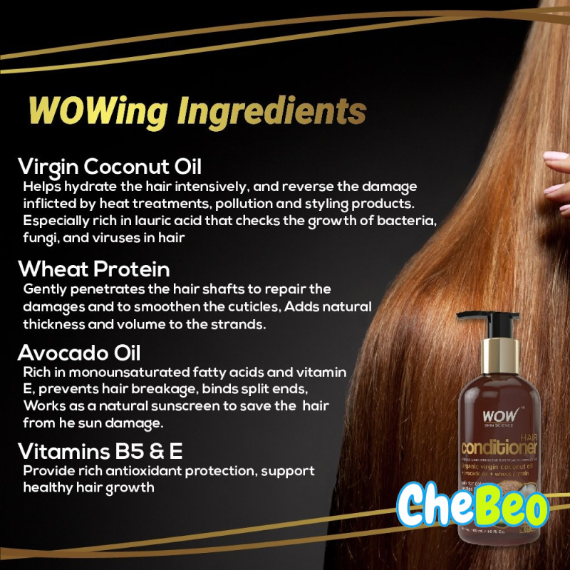• Wow Hair Conditioner incorporates certified bio actives wheat protein, virgin coconut oil, avocado oil, sweet almond oil, castor oil, jojoba oil and arga oil to ensure maximum performance. Ideal For Men & Women