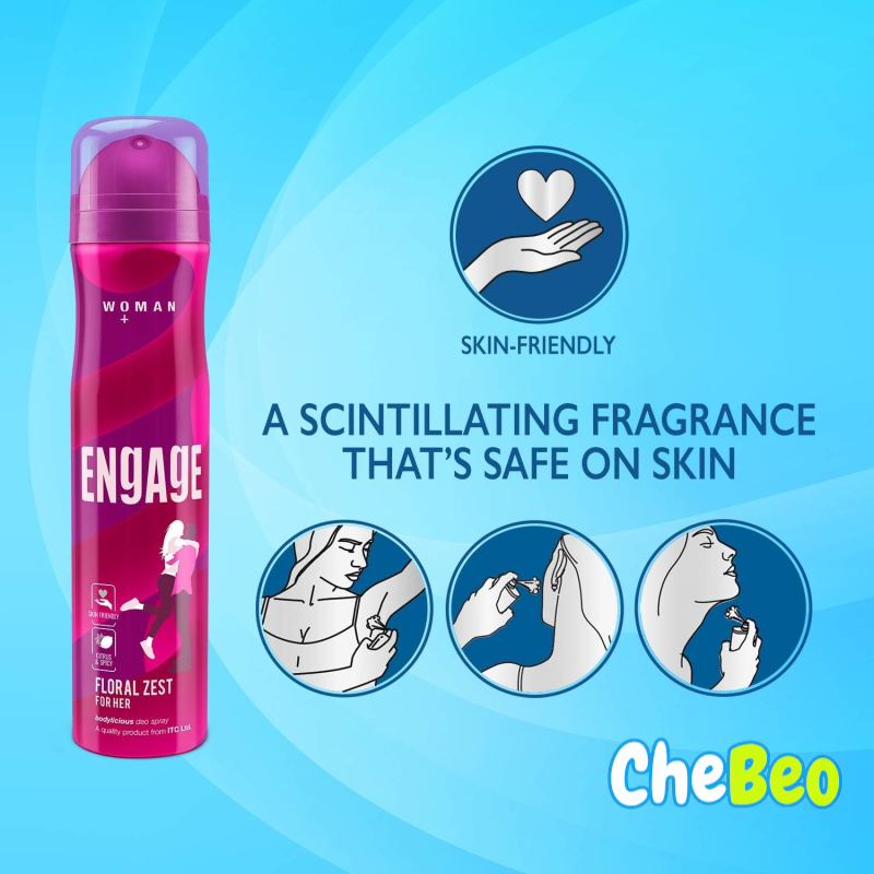 Engage Floral Zest Deodorant for Women, Citrus and Floral