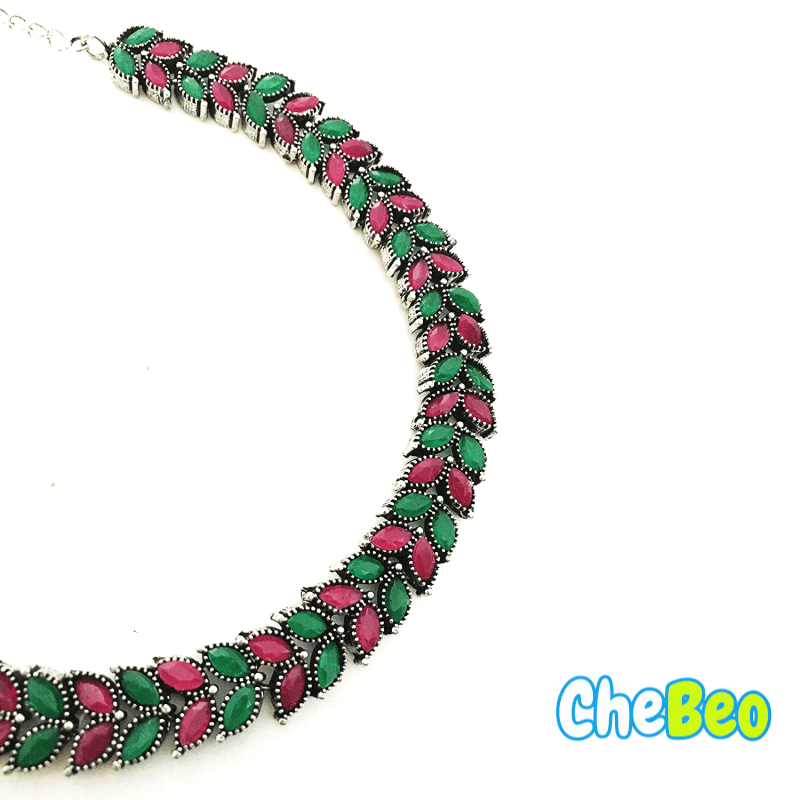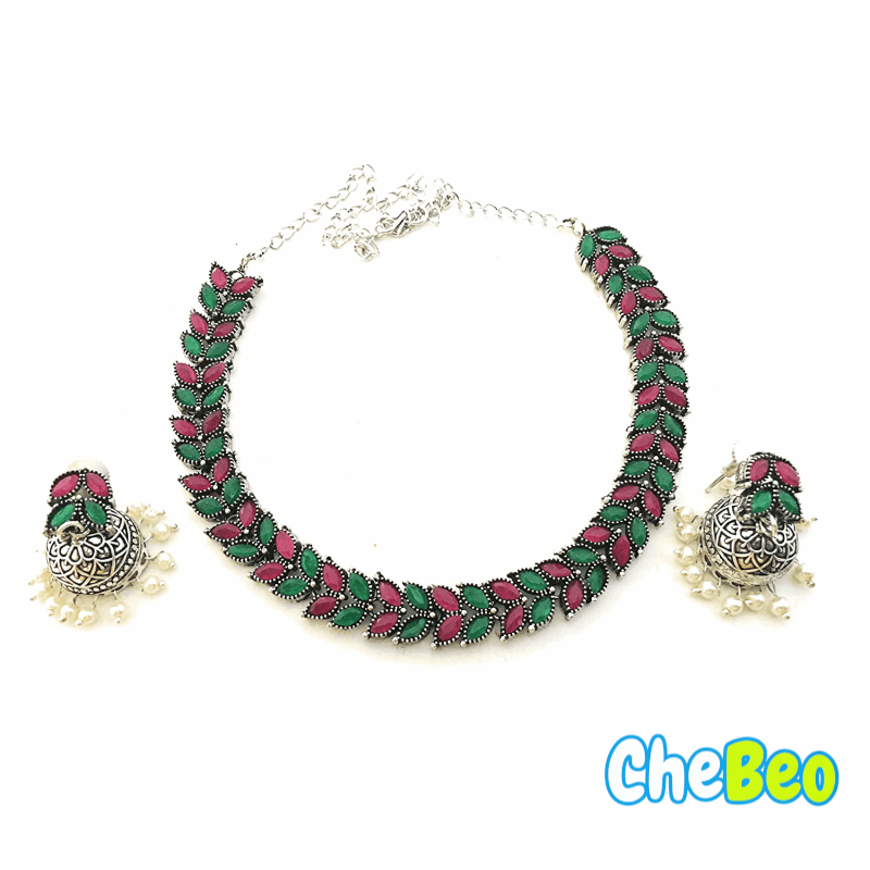 German Silver Stone Studded Oxidized Jewellery Set