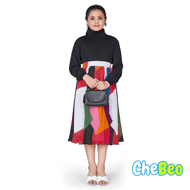 Girl’s Off White Lycra Top with Accordion Pleated Georgette Skirt Clothing Set