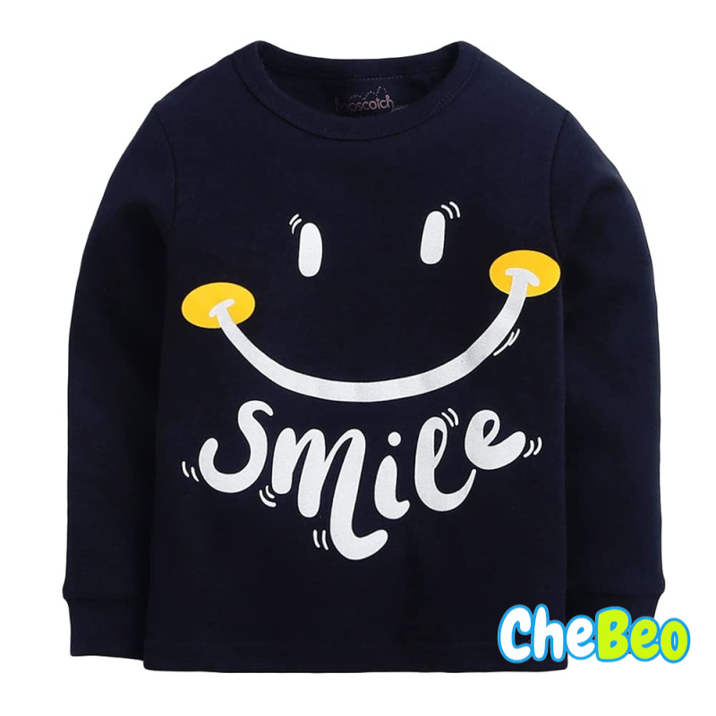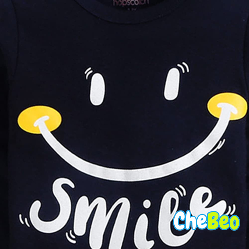 Hopscotch Boys Cotton Solid Text Print Top and Pajama Set in Navy Color