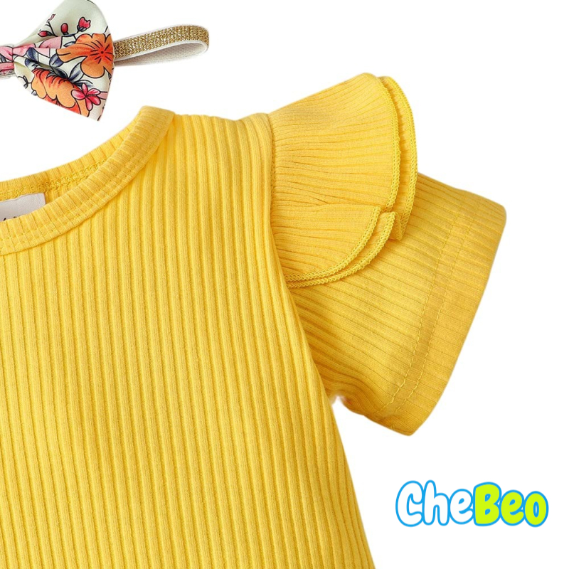 Hopscotch Girls Cotton Floral Print Onesie & Skirt Set with Headband in Yellow Color