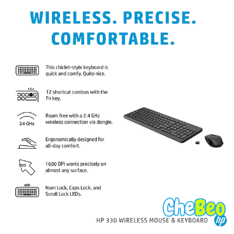HP 330 Mouse & Keyboard Combo Wireless Desktop Keyboard (Black)