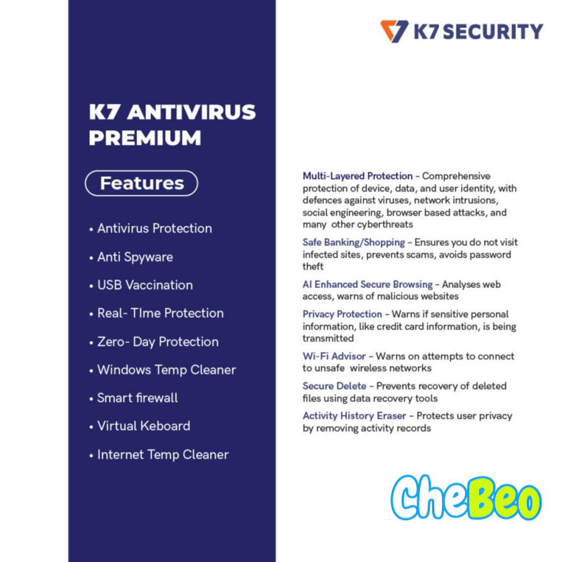 K7 Antivirus Premium- 1 User, 1 Year (Email Delivery in 2 hours - No CD)