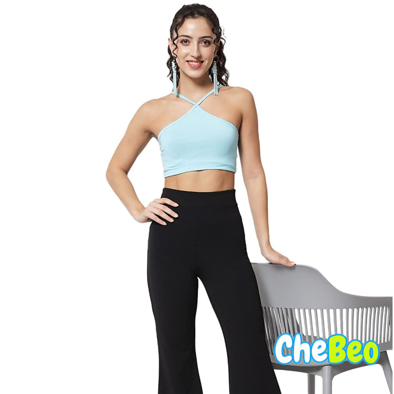 KOTTY Women Regular Length Jet Black Solid Trousers