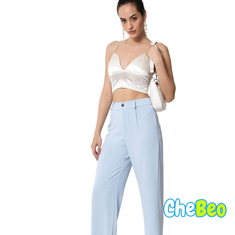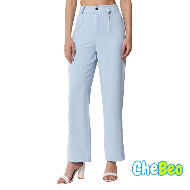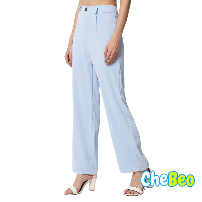 KOTTY Women Solid Polyester Blend Light Blue Trouser
