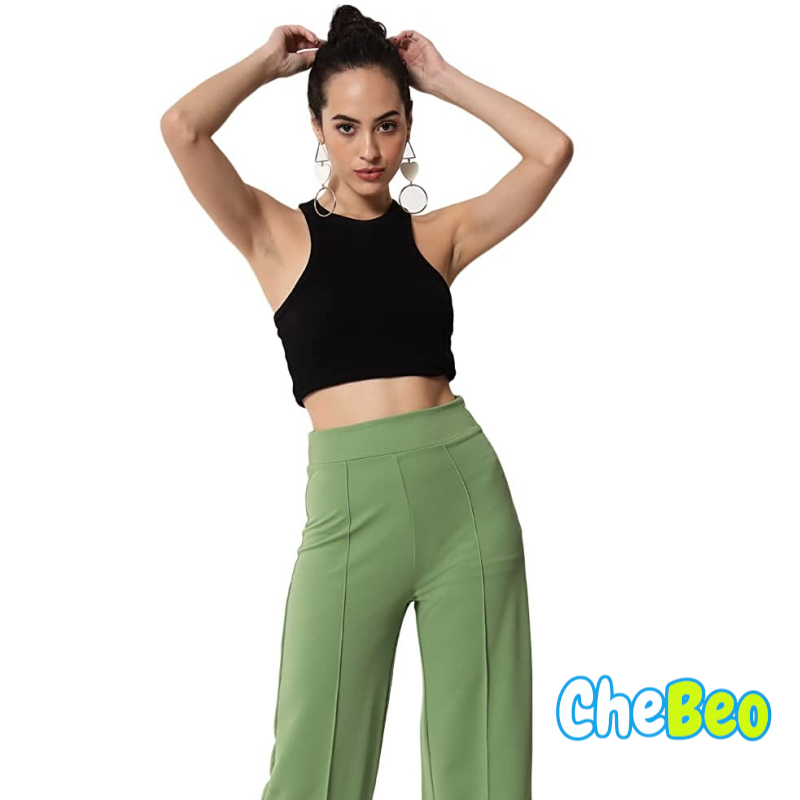 KOTTY Women Solid Polyester Blend Light Moss Green Trouser