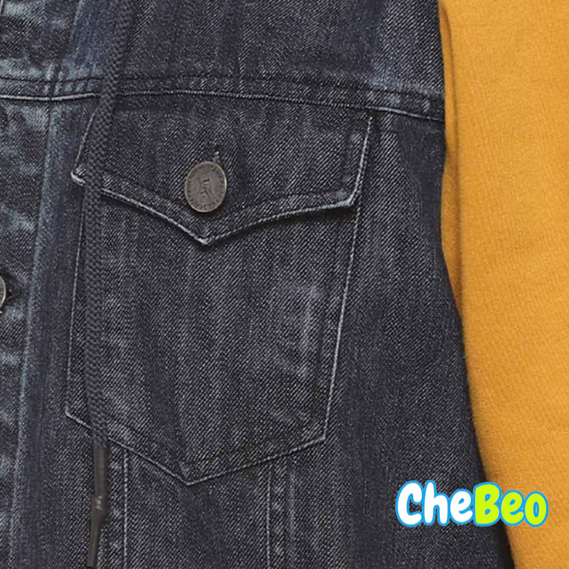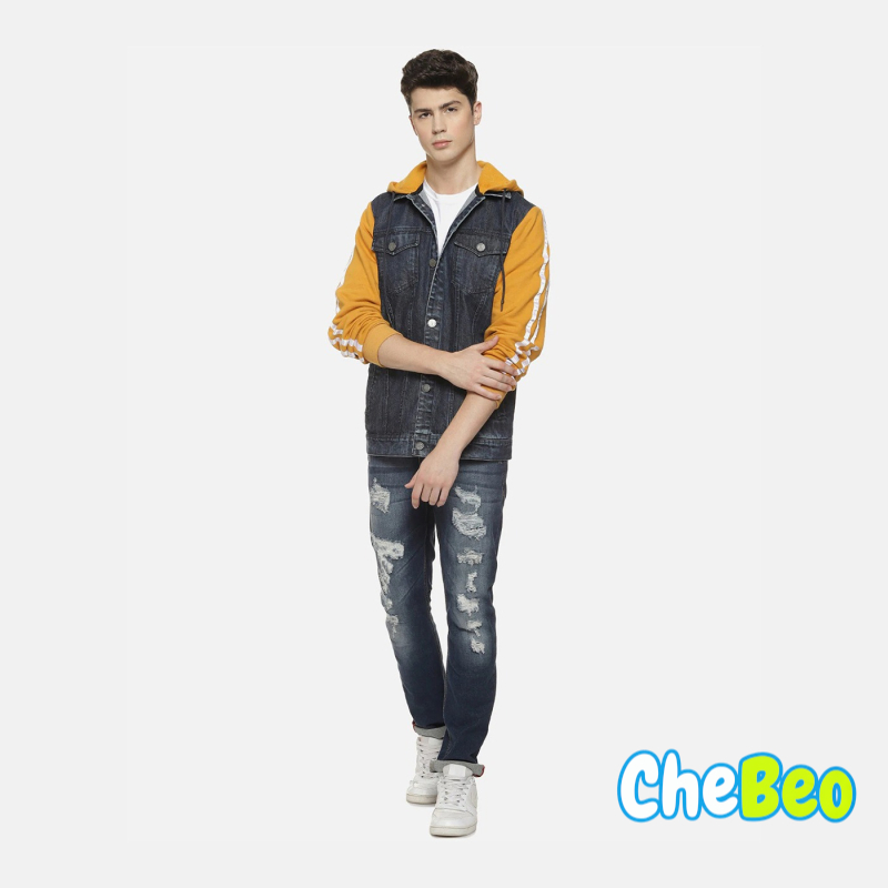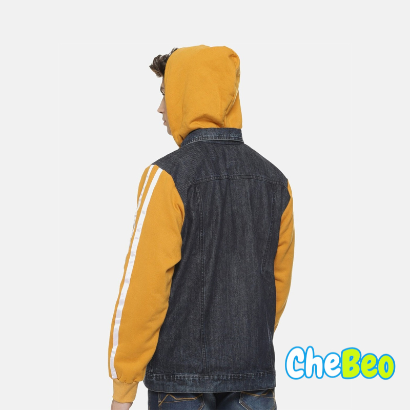Men Charcoal Mustard Washed Colourblocked Windcheater Denim Jacket