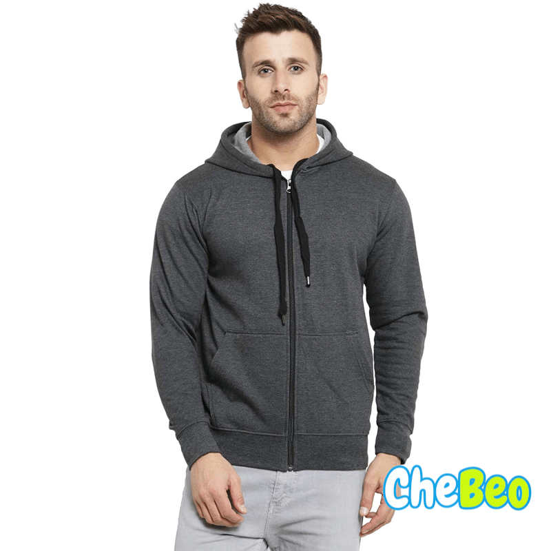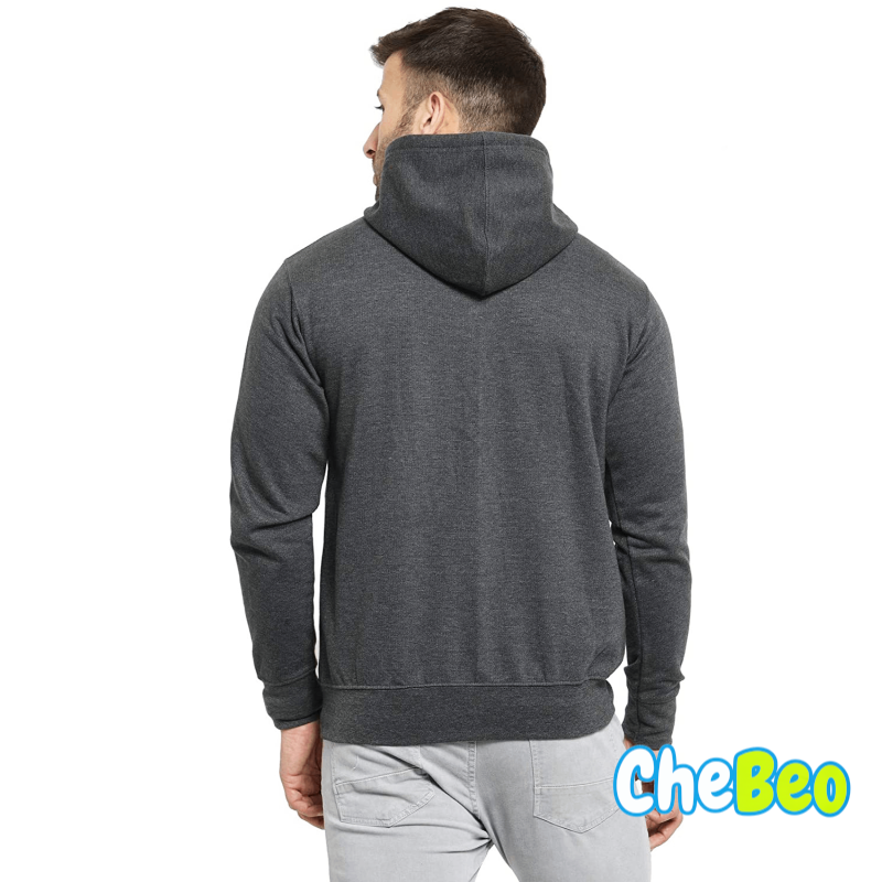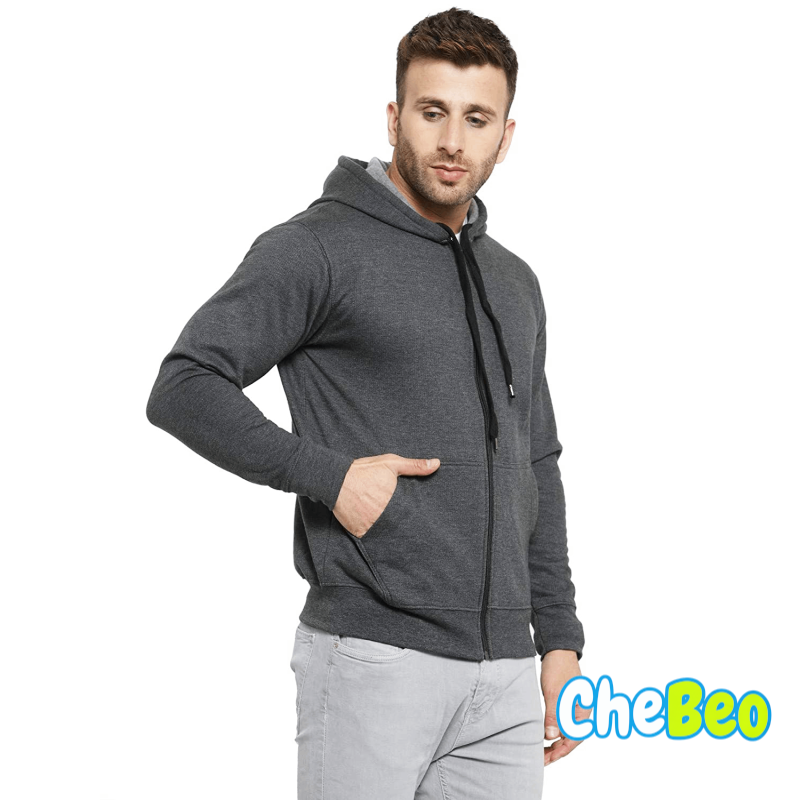 Men's Cotton Pullover Hoodie Sweatshirt with Zip - Charcoal