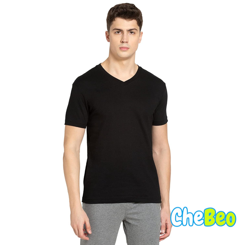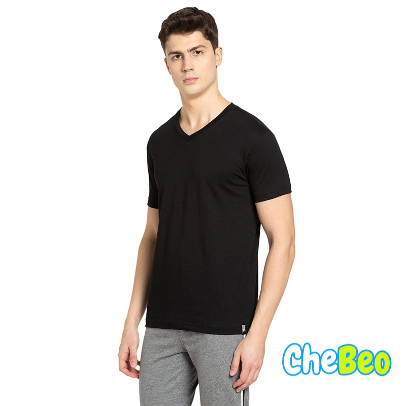 Men's Super Combed Cotton Rich Solid V Neck Half Sleeve T-Shirt
