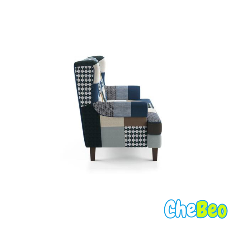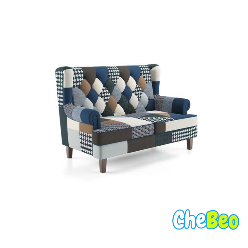 Minnelli 2 Seater Fabric Loveseat In Indigo Patch Work Colour