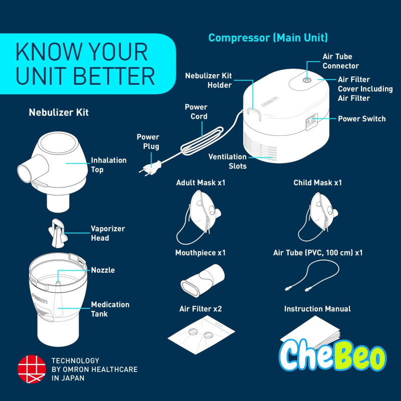 Omron Ultra Compact & Low Noise Compressor Nebulizer For Child & Adult