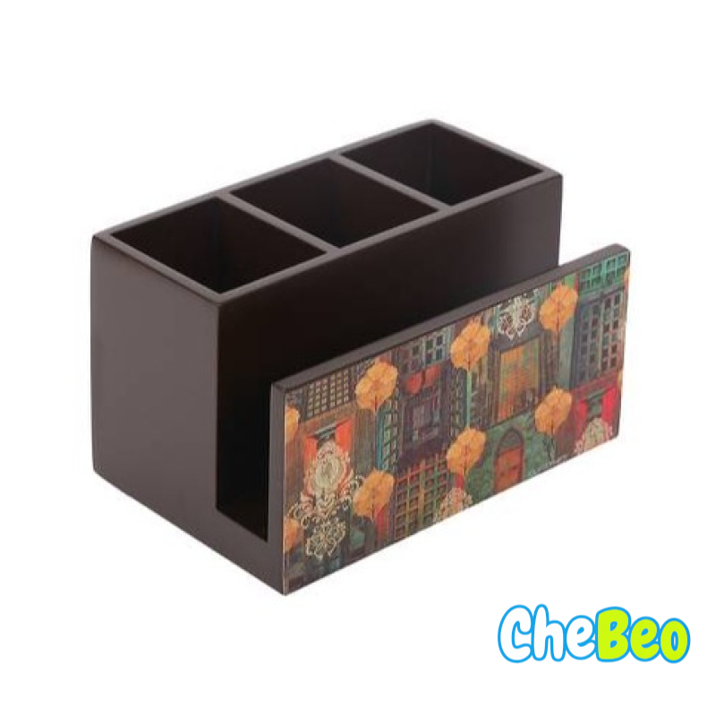 Paulina Brown Engineered Wood Tissue Cum Cutlery Stand