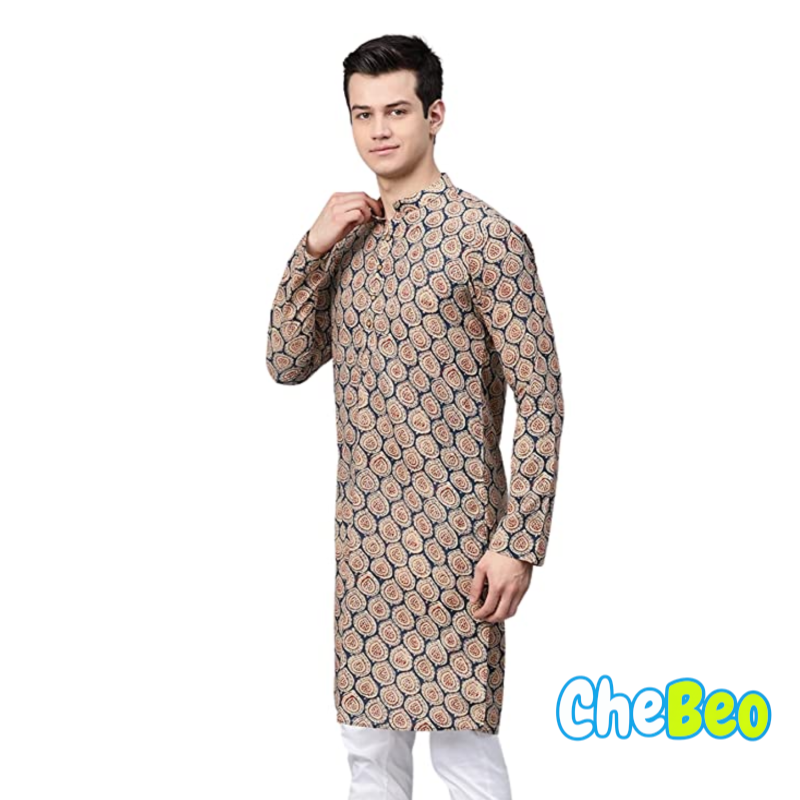 rytras Men's Cotton Printed Straight Kurta