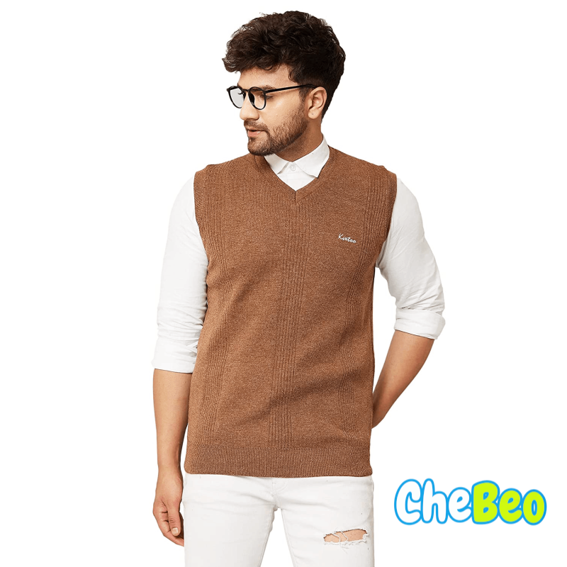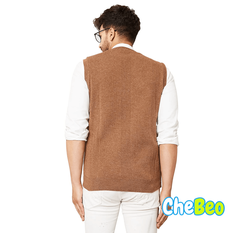 V Neck Sleeveless Winter Wool Sweater for Men