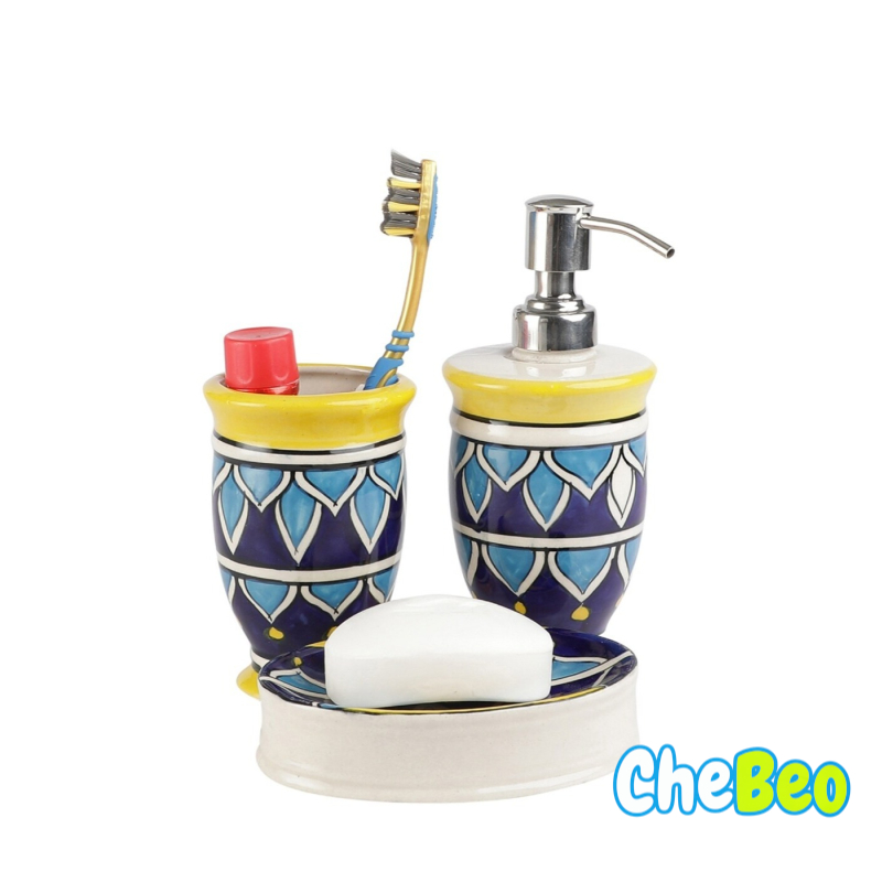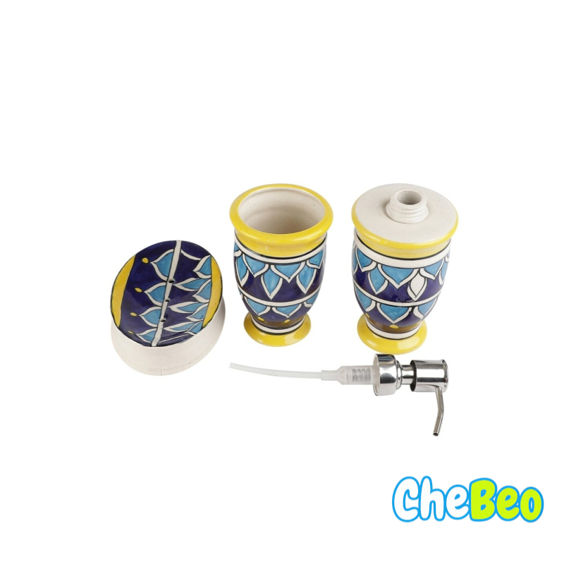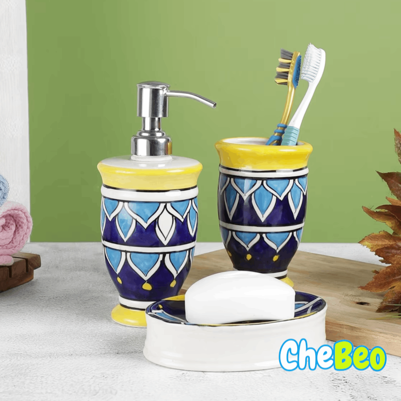 VAREESHA Hand-Painted Dispenser with Brush Holder & Soap Dish