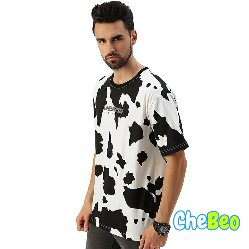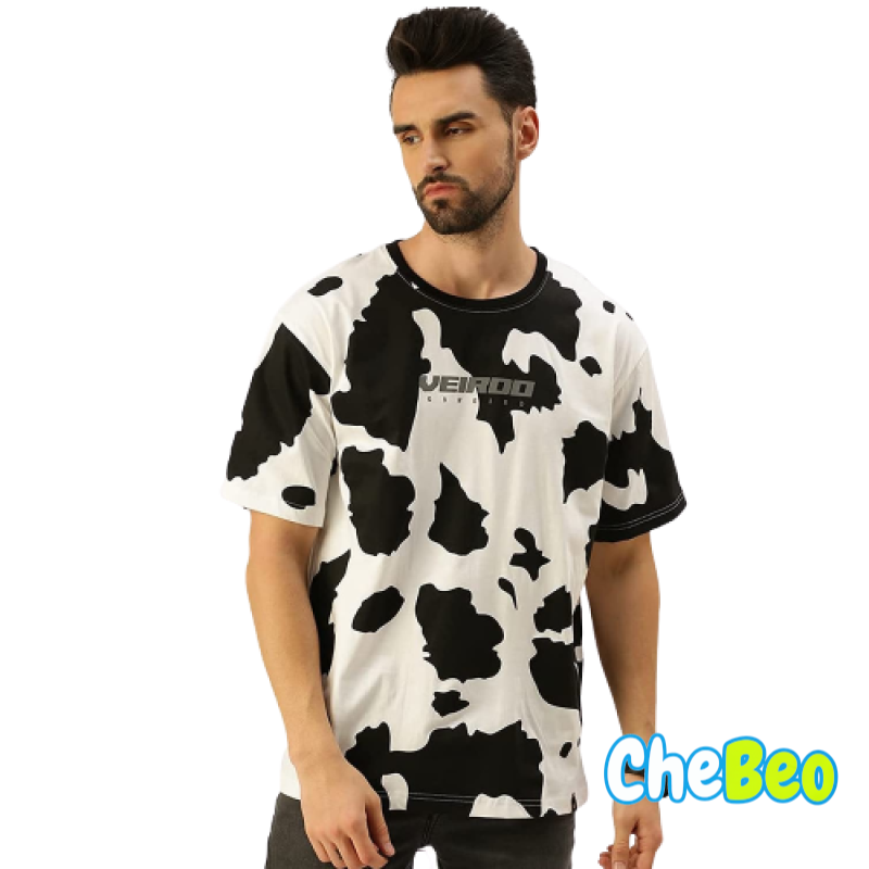 Veirdo 100% Cotton Oversize Drop Shoulder Loose Fit Round Neck Half Sleeve Animal Printed T-Shirt fo