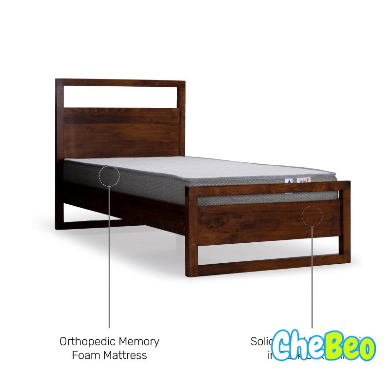 Winston Solid Wood Single Bed with Memory Foam Mattress