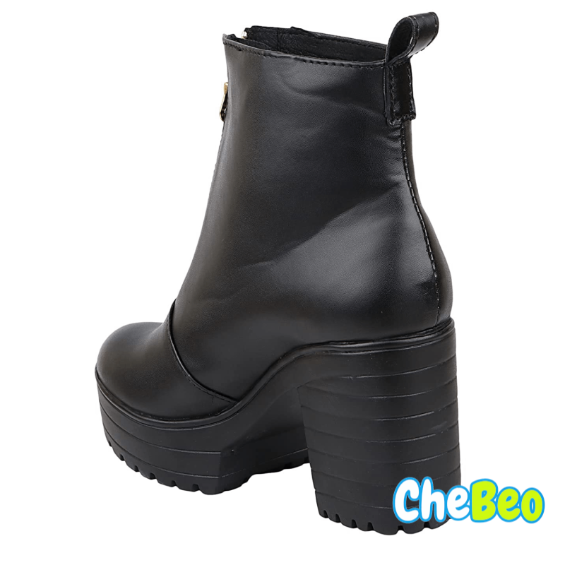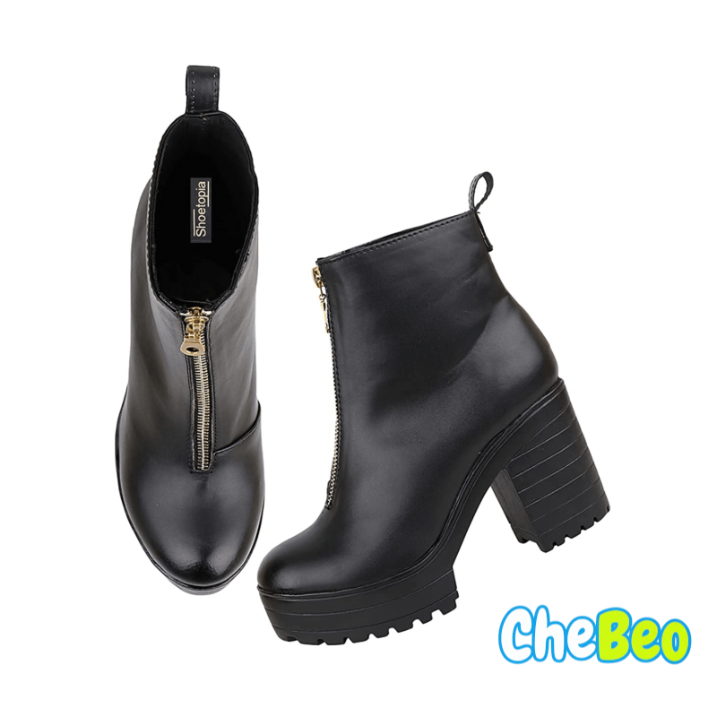 Womens Solid Zipper Block Heeled Boots